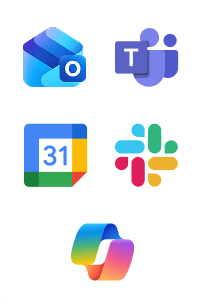 Nadia integrates with Microsoft Teams, Outlook, Copilot, Google Calendar, and Slack.